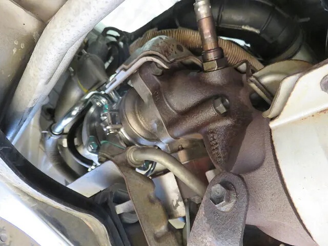 エンジンルームを覗き込むと、普段はなかなか目にしないターボチャージャーの姿が見えます。